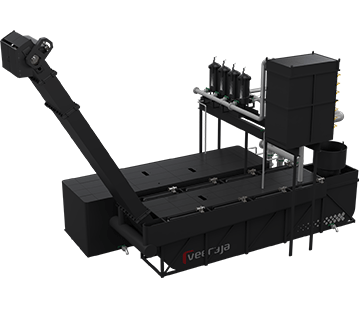 In a CFS, Dirty fluid along with chips is collected in the dirty tank. This tank has a continuously moving scarper conveyor which removes the chips that settle down. A rotating mesh drum is placed inside this tank. The fluid passes through the mesh drum while the chips are separated on the outside. The filtered fluid drops into a clean tank. Clean fluid pump supply pressurized fluid to the machines. Sizing of the tanks, mesh drum and pumps is done based on your total flow requirement. In addition fine filter housing can be provided for through spindle coolant.