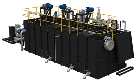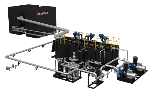 A Galvanising line system usually consists of a large tank. The dirty fluid enters into the dirty fluid compartment. Using baffles the complete flow is passed through Magnetic separator into the semi clean compartment. This fluid is then sucked by large pumps and passed through self-cleaning filter and PHE skid to control the temperature. A pressure control valve ensures constant pressure is supplied to the mill.